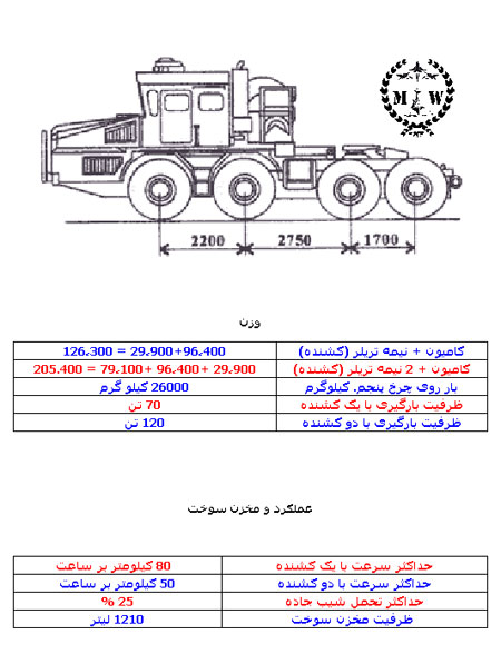 این کشنده قدرتمند 8 در 8 توانائی حمل 70 تن را با یک یدک کش و همچنین با اتصال یدک کش ( کفی ) دوم 60 تن دیگر به ظرفیت حمل آن افزوده میشود .